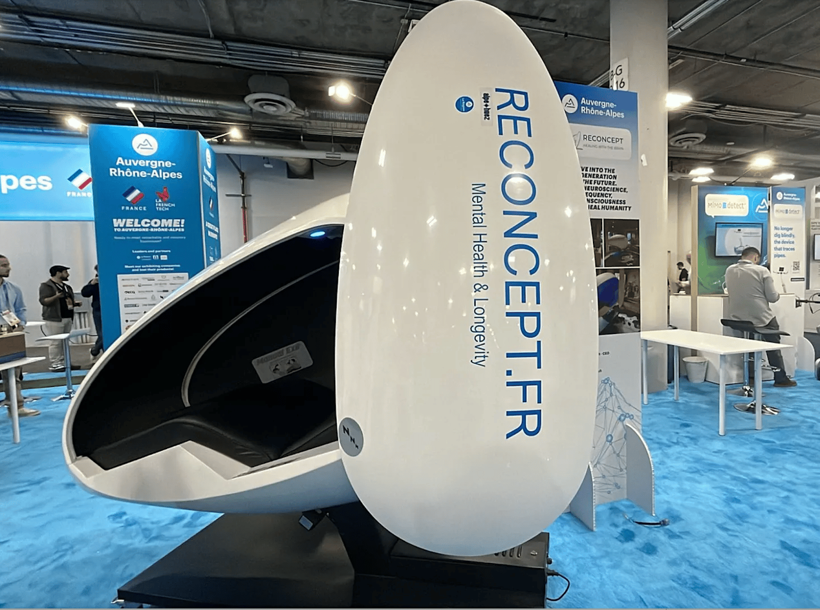 It was hard to miss the Reconcept pod that tips you backwards to a zero gravity position, gives you a massage, and plays bird song. It was even harder to get out of it and back to the busy conference floor.